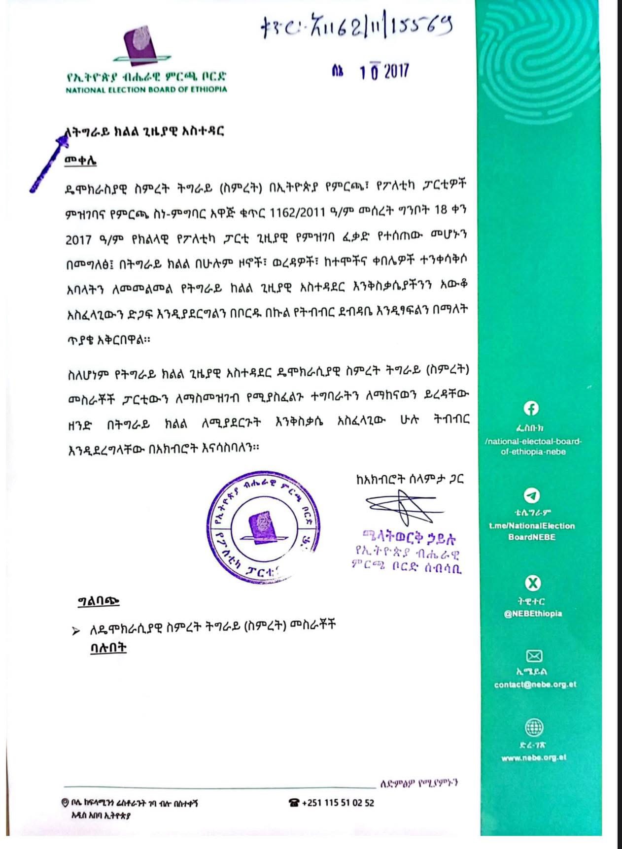 Under the political landscape of the Prosperity Party (PP), the TPLF appears on the brink of its final demise. The National Electoral Board of Ethiopia (NEBE) cancelled the TPLF’s registration as a legitimate political party and outlaws it. The TPLF can no longer operate or participate in Tigray politics as well as in Ethiopia, which is effectively an illegal party. Instead, the NEBE validates Simret as a legitimate political party in the Tigray Region. The letter sent to the Tigray Interim Regional Administration states, “According to the Ethiopian Electoral, Political Parties Registration and Election Proclamation No. 1162/2019 (2011 ዓ/ም), a temporary certification was granted on May 26, 2025 (ግንቦት 18 ቀን 2017 ዓ/ም), allowing Simret to engage in its political activities with full legal recognition.” The Tigray Democratic Solidarity (Simret) has requested that the Board send a letter of cooperation to the Tigray Regional State Administration, seeking support in mobilizing and recruiting members throughout all zones, districts, cities, and kebeles in the Tigray Region. Therefore, the Board respectfully requests that the Tigray Regional State Administration support the party’s activities through essential cooperation with the founders of the Tigray Democratic Solidarity (Simret) to assist in conducting the necessary actions to register the party.” This evidently shows the end of the TPLF power dynasty.